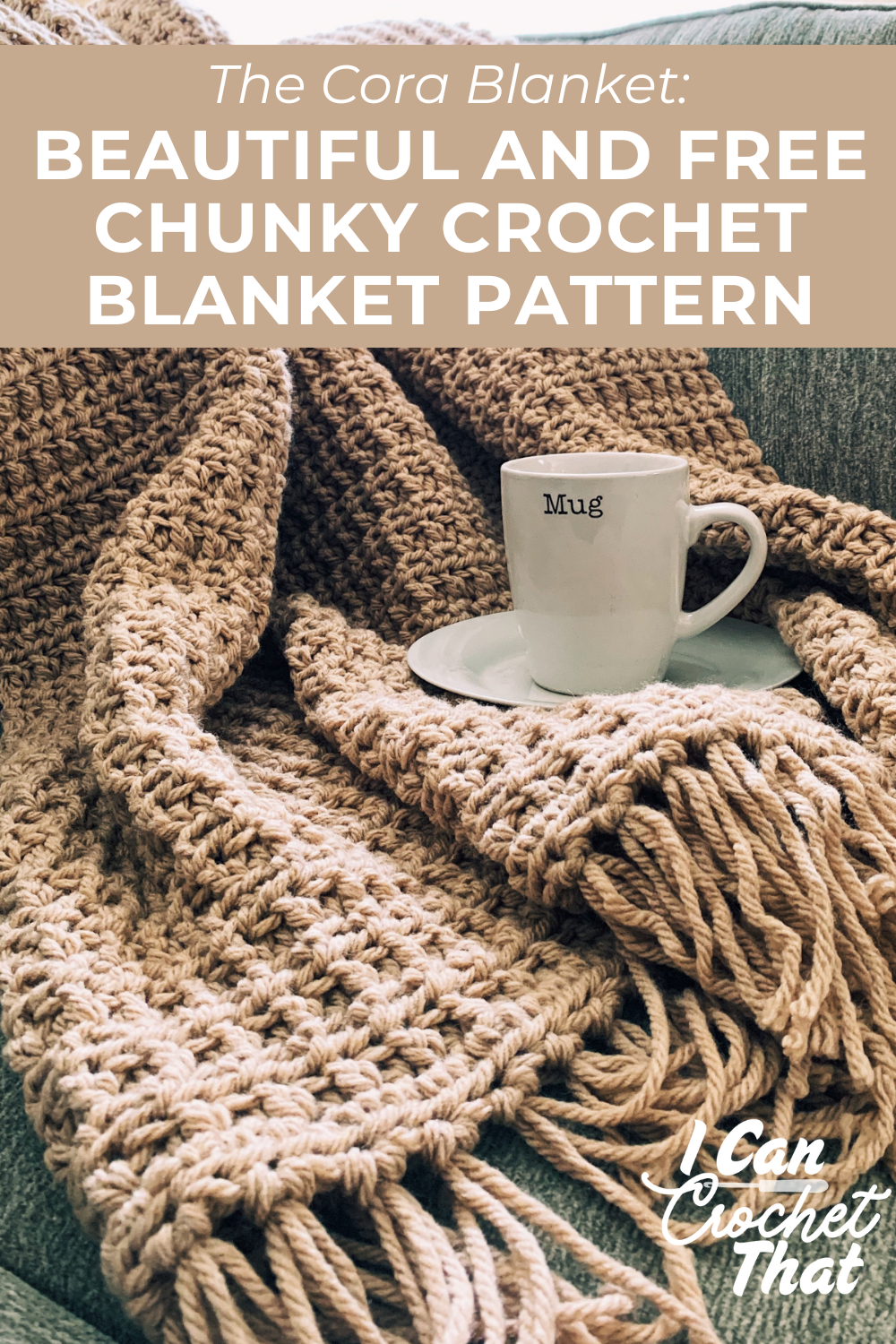 Introducing the Cora Blanket, and easy (and free) chunky crochet blanket pattern using Lion Brand's Hue + Me yarn.
