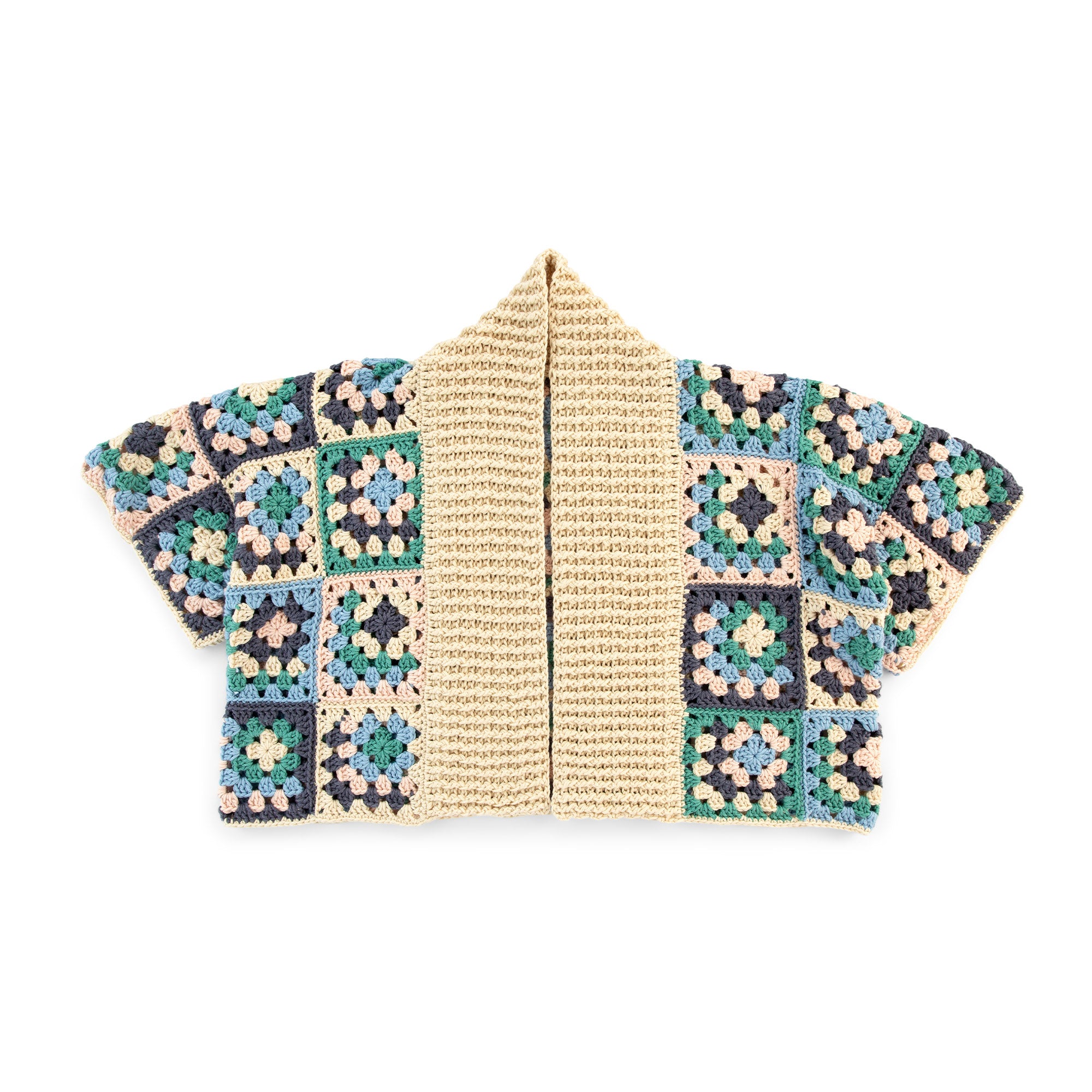 Description: This cardigan is such a good next step if you love granny squares but want to turn them into something you’ll actually wear. The shape is intentionally roomy and drapey (more “throw-on-and-go” than fitted), and the airy granny-square fabric makes it feel lighter—great for layering in spring/summer or over a tank on cool evenings. Yarnspirations lists it as Easy, and it uses a mix of familiar stitches plus some simple post stitches for texture, so it feels interesting without being intimidating.
