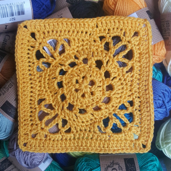 Description: If you want a granny square that instantly feels “special,” this one is such a good pick. The center flower has 8 petals (a tweak from the designer’s original happy flower concept), which gives it a fuller, more dramatic look once it’s squared off. It’s worked in joined rounds from the center, just like many classic granny squares, so it’s a nice step up without being overwhelming.
