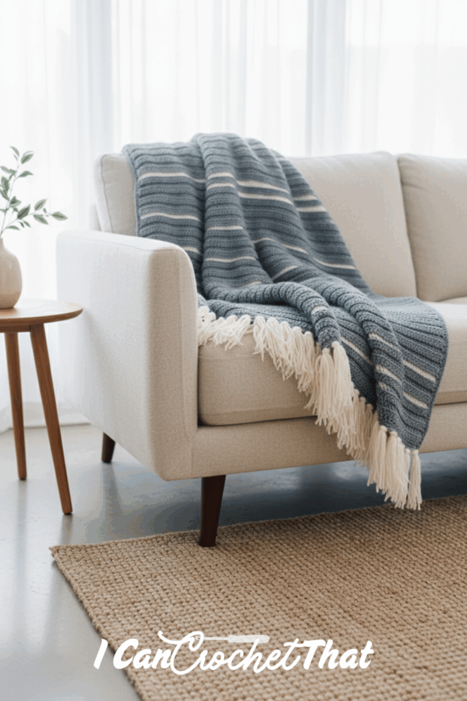 Wrap yourself in the comfort of handmade elegance with the Coastal Stripe Double Crochet Blanket, and enjoy the satisfaction of creating a beautiful piece that rivals high-end designs.