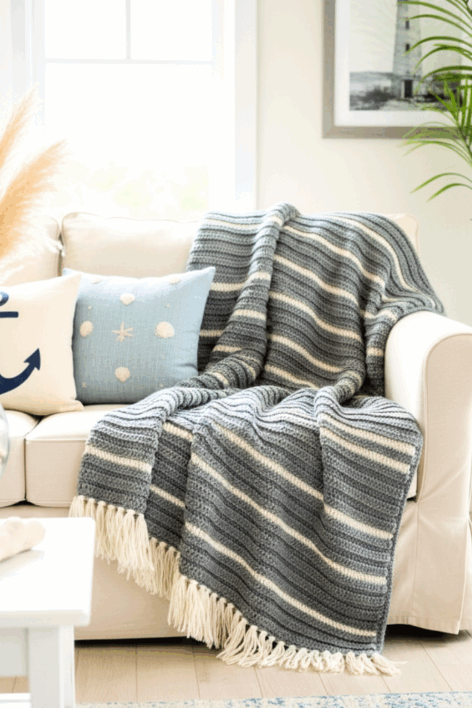 Free Double Crochet Blanket Pattern - The Coastal Stripes Throw