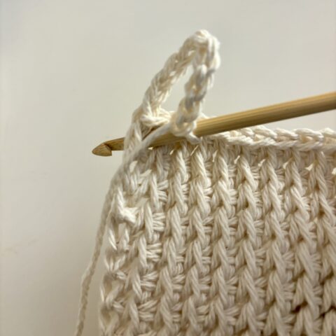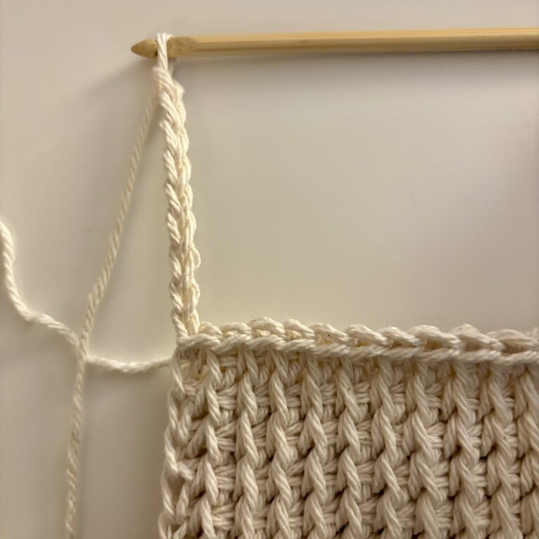 • Step 3: Yarn over and pull up a loop in the last Tunisian stitch.