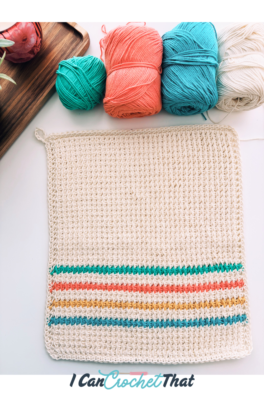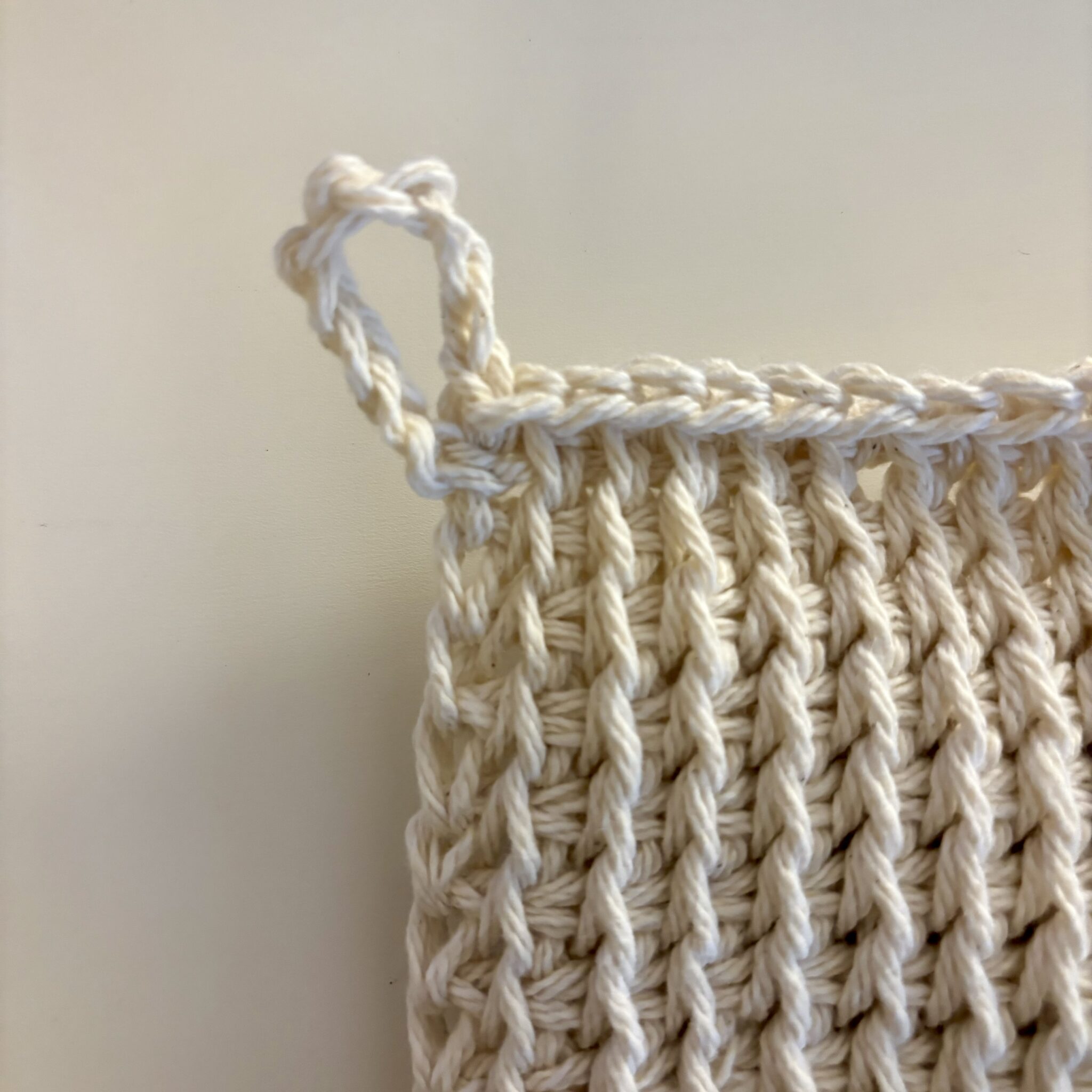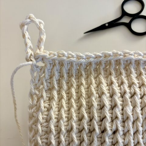 👉 You only need one skein of cream yarn for the rest of the dishcloth.