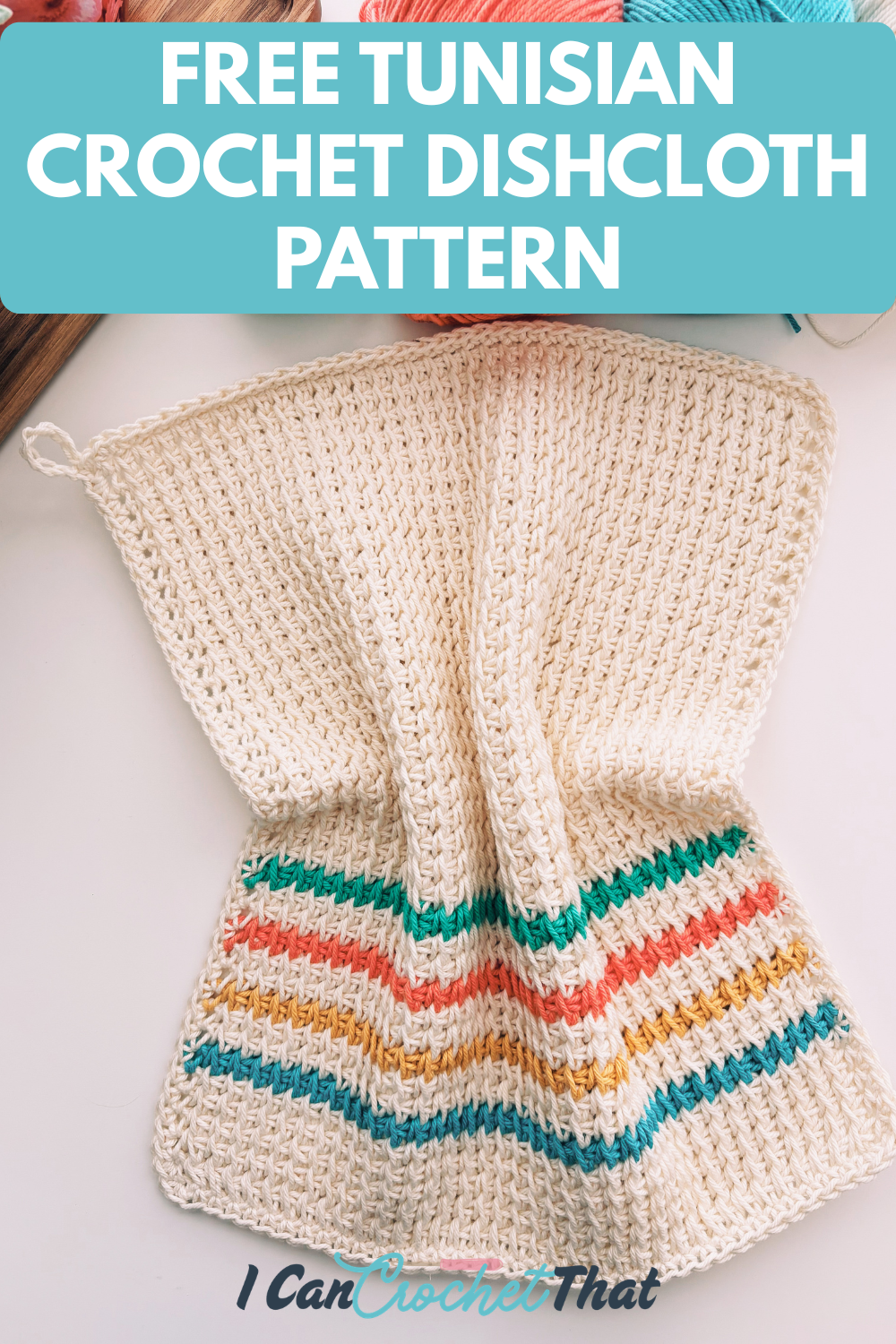 If you love simple, relaxing stitches with just a little pop of color… this free Tunisian crochet dishcloth pattern is for you.
