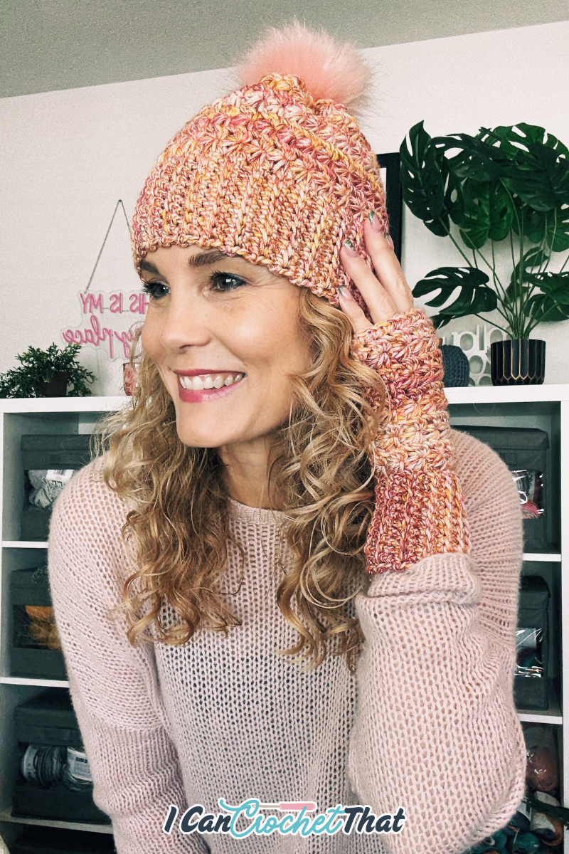 If you loved making the Mosaic Star Stitch Crochet Fingerless Gloves, you’re going to feel right at home with this matching hat.
