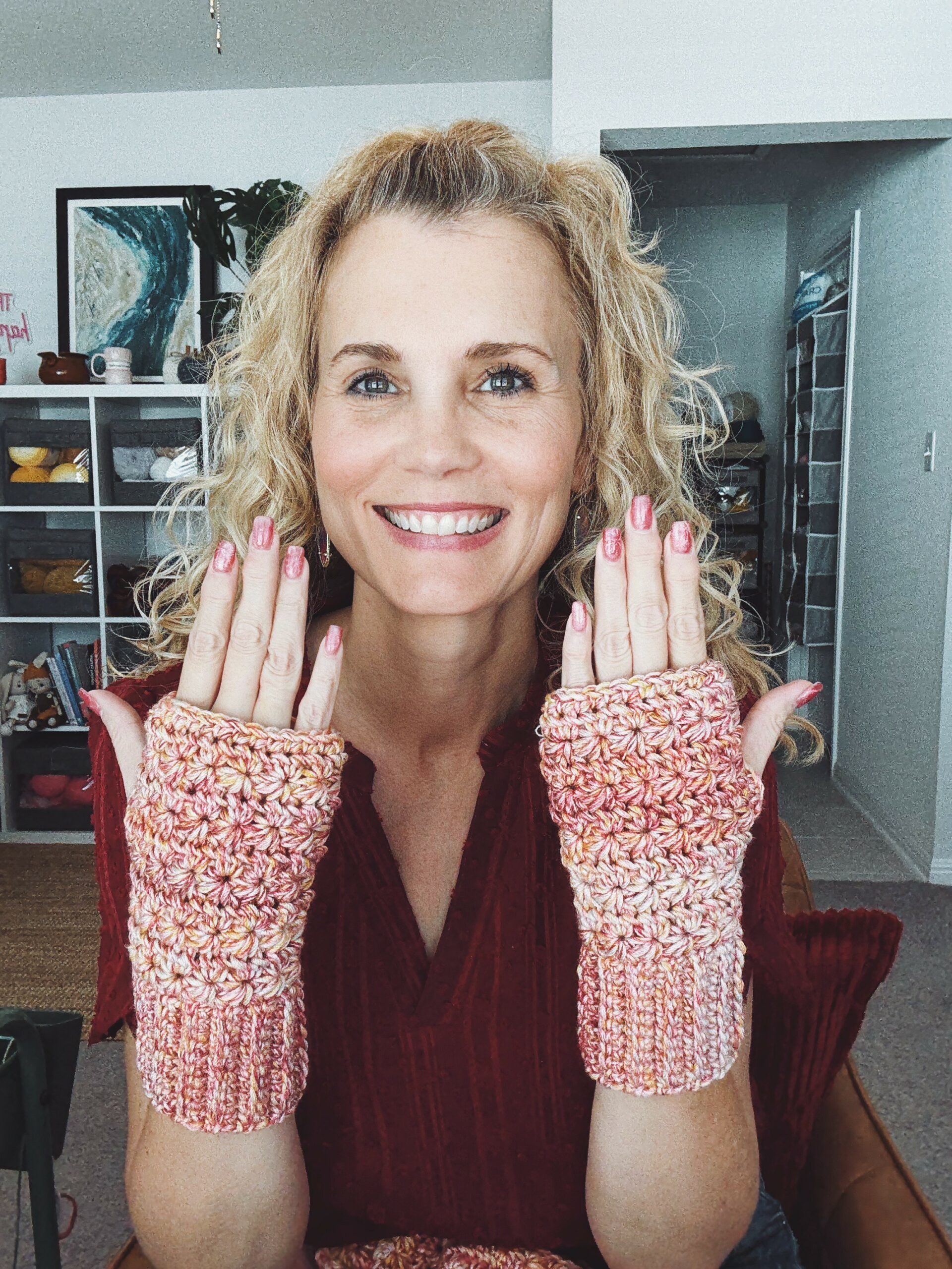 This design uses a chunky #5 yarn and the star stitch, which creates that beautiful look without any complicated techniques. The result? A soft, comfortable pair of gloves that work up fast and make a perfect handmade gift.