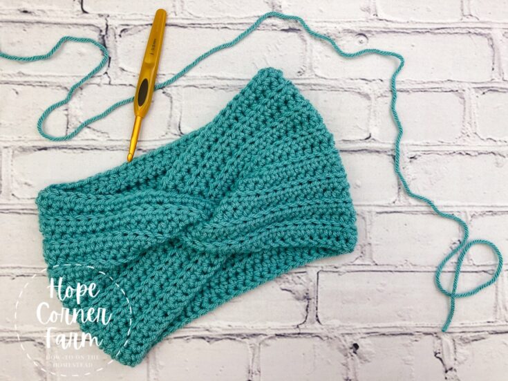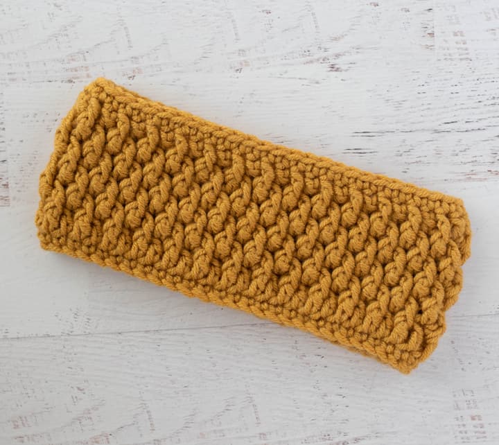 This beloved twist-front headband uses slip stitch and single crochet ribbing to imitate the look of knitted ribbing.