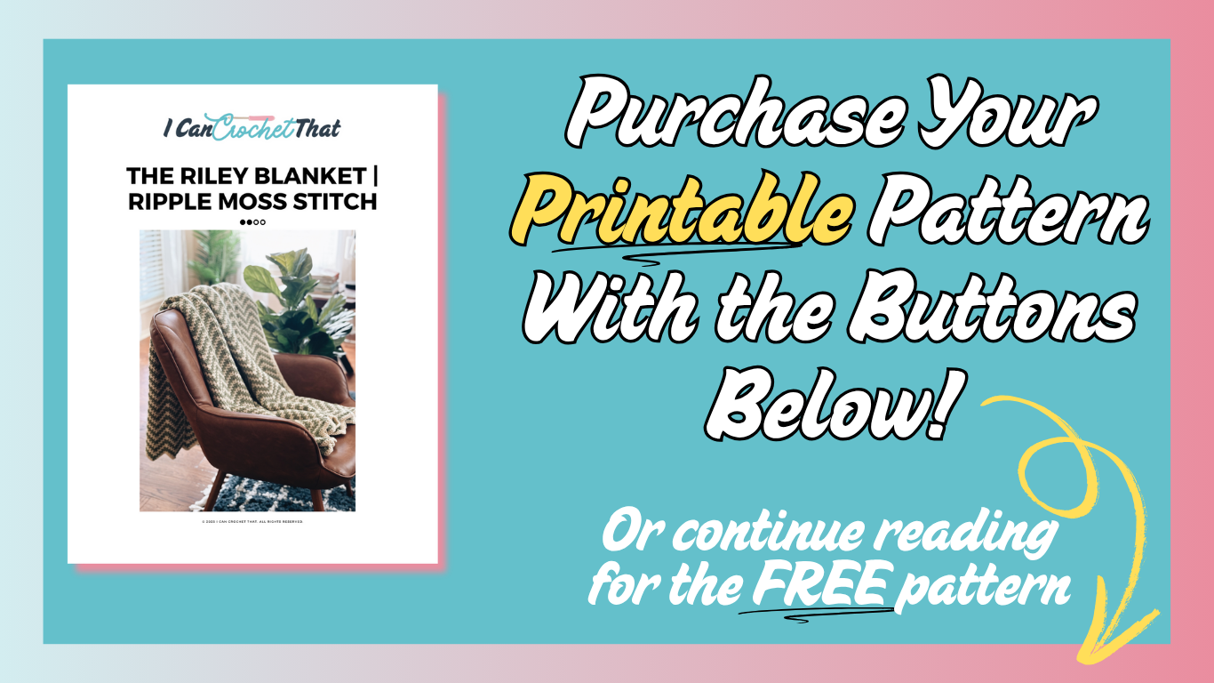 The crochet ripple moss stitch can be a little intimidating at first because of the counting required and the skipped stitches, but I promise you'll get the hang of it quickly and won't need to access the pattern.