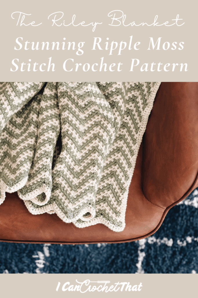 Meet "The Riley," a super cozy crochet blanket pattern that rocks the ripple moss stitch like no other. It's all about playing with two colors, alternating every couple of rows to keep things interesting.