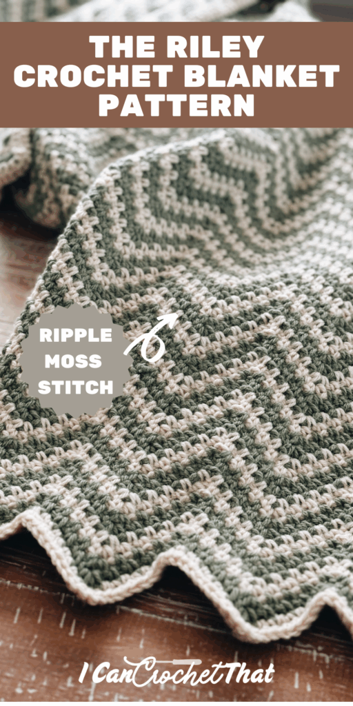 The ripple moss stitch crochet blanket pattern features a detailed and engaging texture, offering a visually stunning and cozy addition to any room.