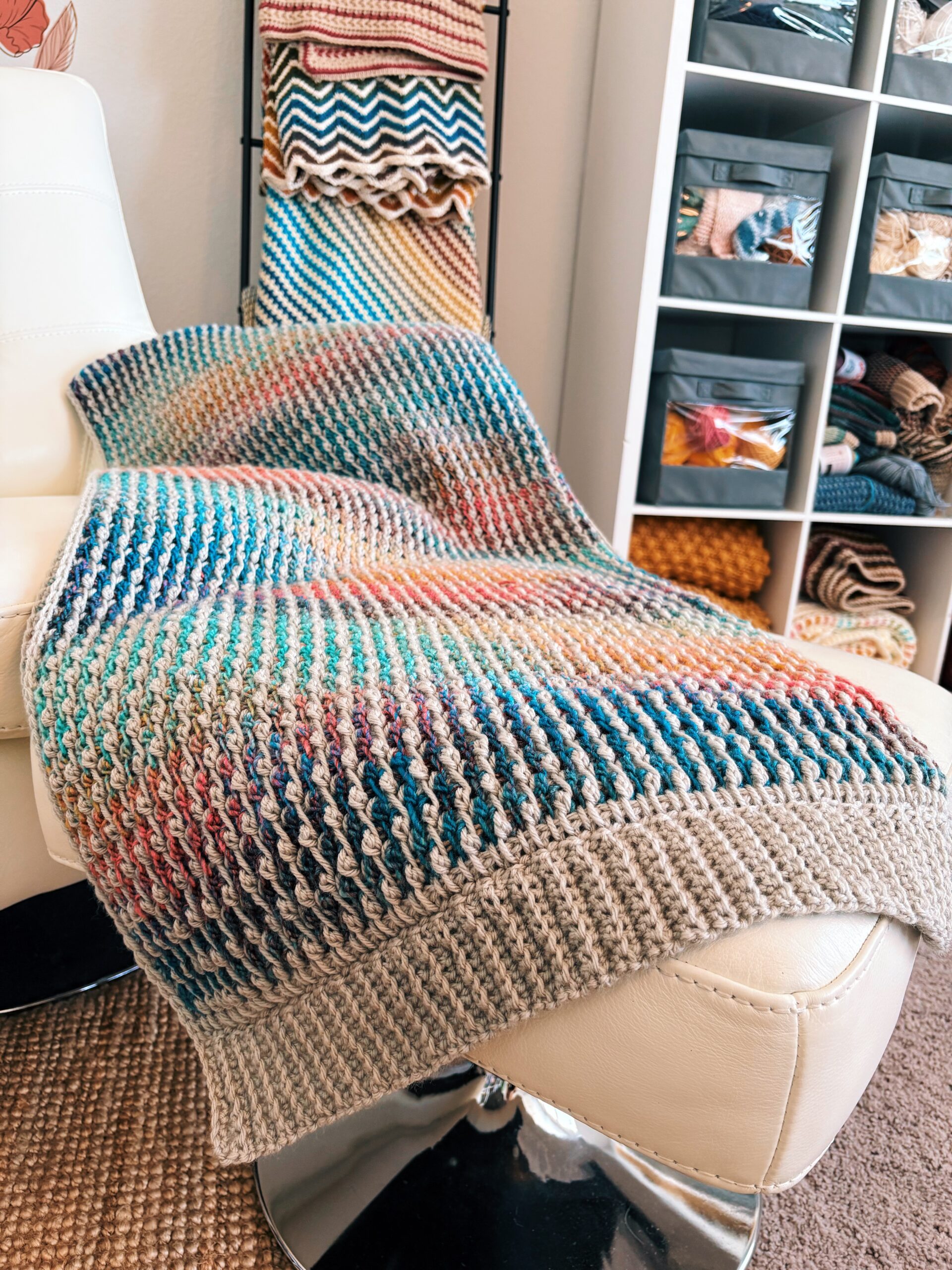 Instead of tassels, I added a ribbed border inspired by my Quinn Blanket, and it gave the whole piece the perfect finish.