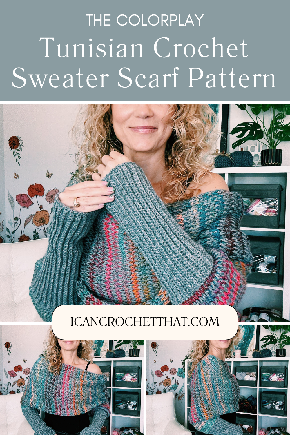 When I sat down to design this sweater scarf, my main goal was to make a Tunisian crochet project that felt totally approachable. Even if you’re newer to Tunisian.